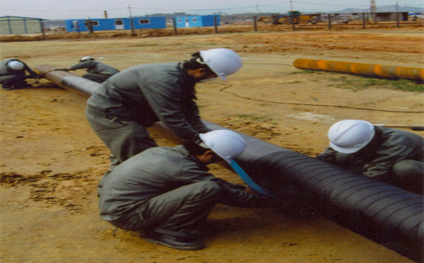 3.纏繞聚丙烯防腐膠帶必須待底漆表干后進行,繞帶過程中必須保持均勻漲力,纏平貼實、搭接一致,纏好膠帶后,在埋地前為克服造成起泡現象,需將防腐管道采取遮陽保護的方法掩蓋24小時。