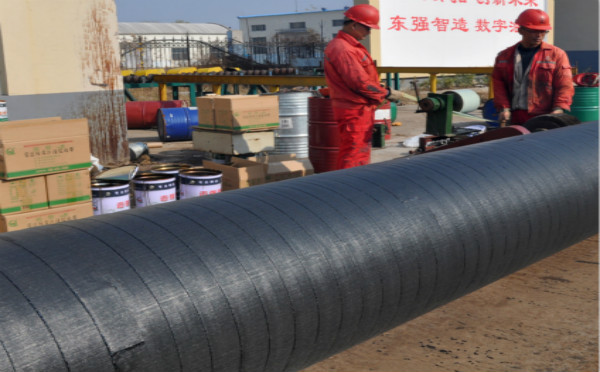 纏繞聚丙烯防腐膠帶待底漆表干后即可進行,繞帶過程中必須保持均勻漲力,纏平貼實、搭接一致,纏好膠粘帶后,在埋地前為克服造成起泡現象,需將防腐管道采取遮陽保護的方法掩蓋24小時。