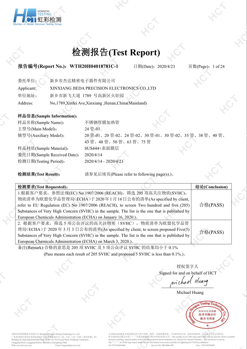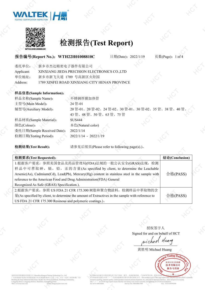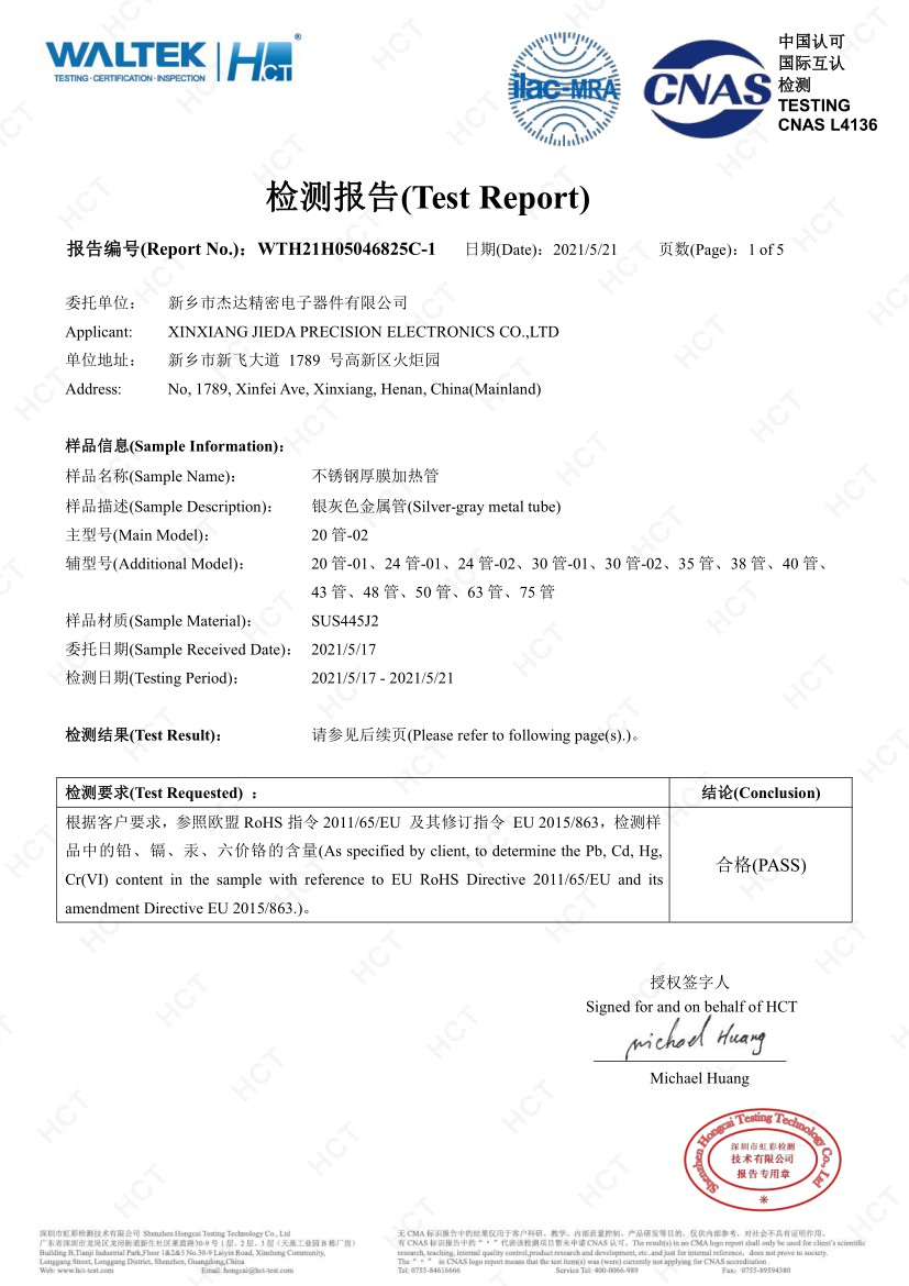 2012年8月公司成立,與中科院合作,確立厚膜加熱領域發(fā)展方向,確定厚膜制高點-不銹鋼厚膜加熱管的產(chǎn)品策略。