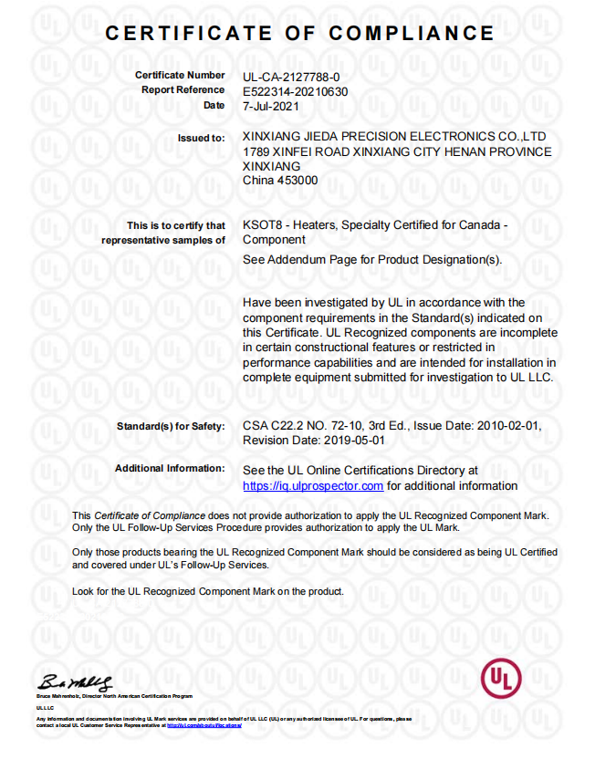 2022年產(chǎn)品通過UL認證。